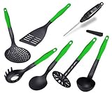 Features und Spezifikationen 6 tlg. Küchenhelfer Koch Set Kunststoff grün / schwarz Hitzebeständig bis zu 260 °C Spülmaschinenfest und Digital Einstich Thermometer